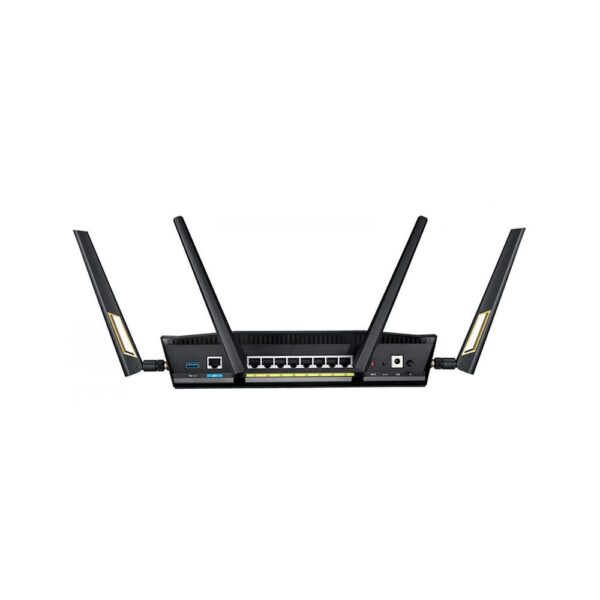 Powered by a 1.8 GHz quad-core processor and 1 GB RAM with 256 MB flash memory, the RT-AX88U handles heavy traffic, multiple connected devices, and high-bandwidth activities with ease. Its Tri-Band architecture (2.4 GHz + two 5 GHz bands) spreads the load across three bands to reduce congestion and ensure optimal performance — perfect for busy households or small offices with many users.